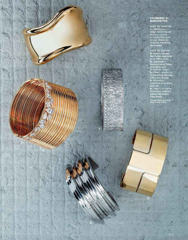 "Au cours d'un voyage au Japon, Margaux Gripon flashe pour les bijoux mixtes. De retour à Paris, elle dessine des modèles qui deviendront la base de sa première collection. Elle élabore des maquettes en résine à son studio qu'elle fait ensuite fabriquer dans un atelier d'orfèvrerie au Portugal. Ses bijoux sont façonnés comme des sculptures où se superposent trois ou cinq anneaux."