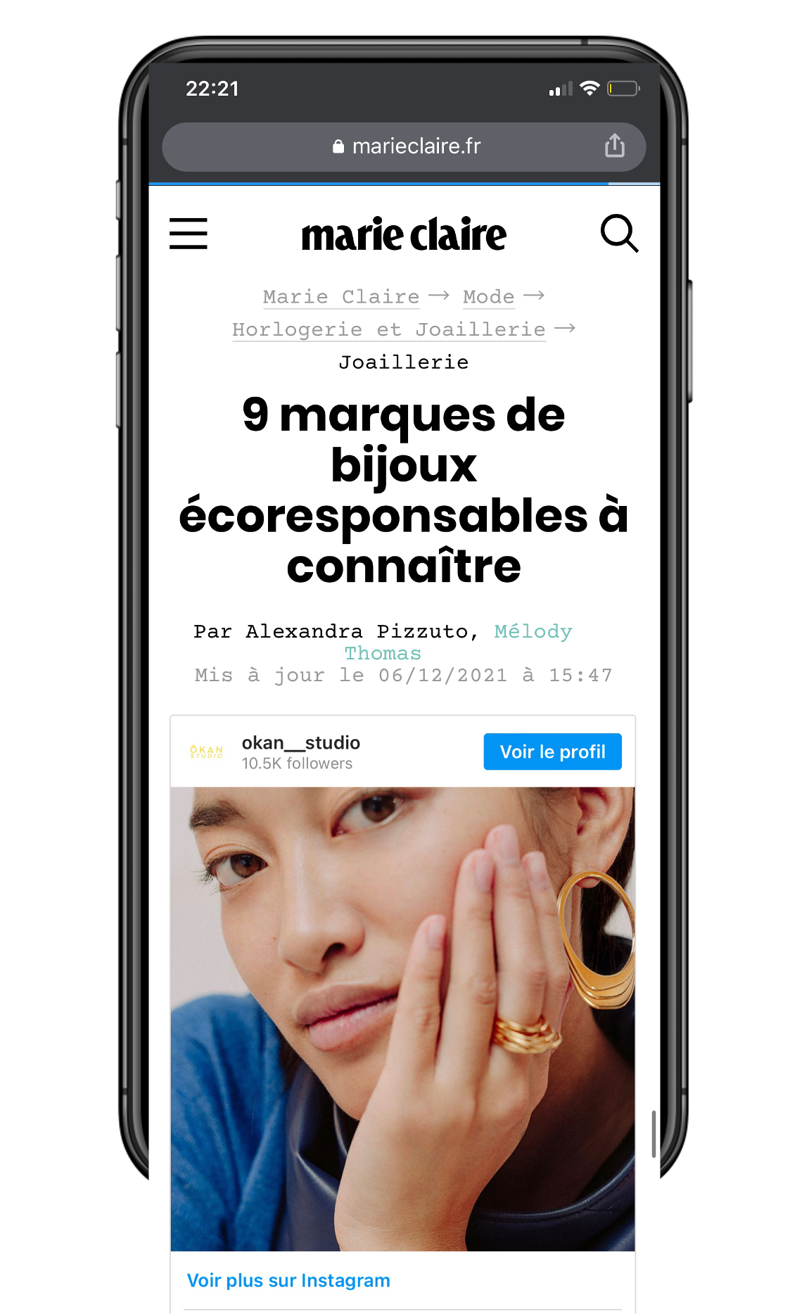 "ŌKAN veut dire « couronne » en japonais. J'aime l'idée d'un bijou « statement » qui orne le corps en lui donnant de la puissance. Ma marque adresse un message aux femmes qui veulent se lancer dans une aventure qui leur tient à cœur et qui cherchent la force d'oser."